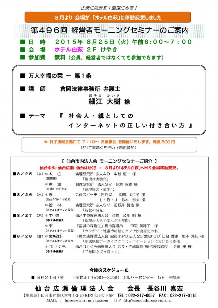 【モーニングセミナー】2015年8月25日(火)am6:00〜