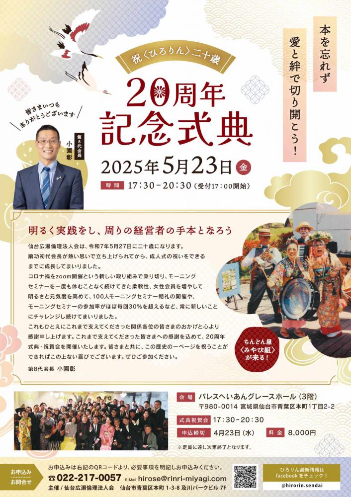 <2025年5月23日(金)仙台広瀬倫理法人会 設立20周年 記念式典 & 祝賀会 のお知らせ>